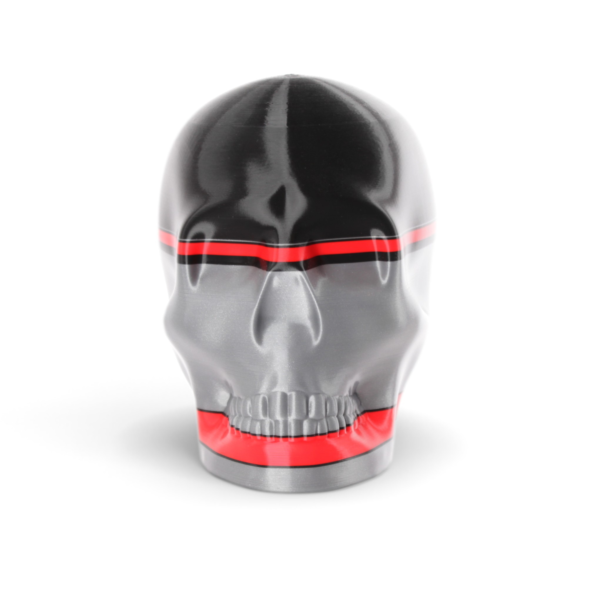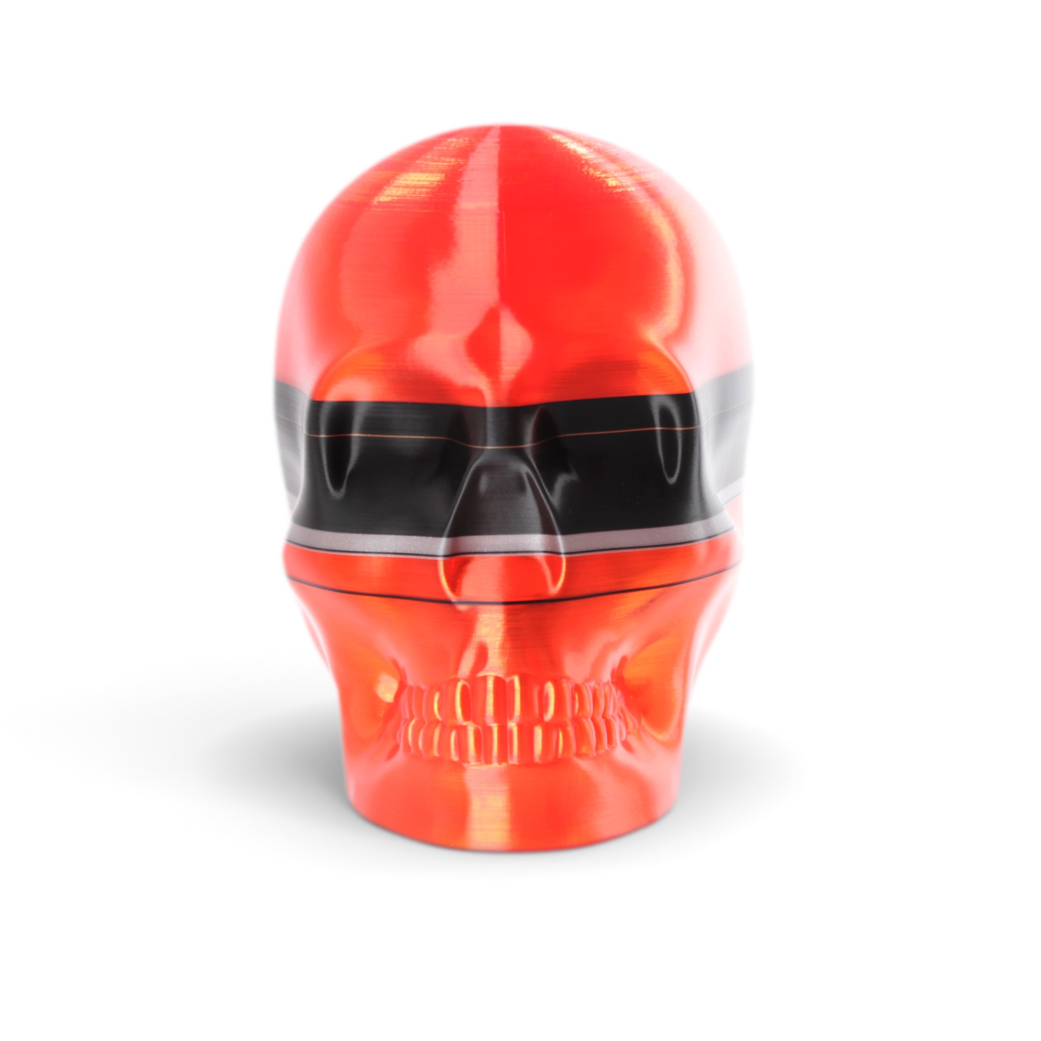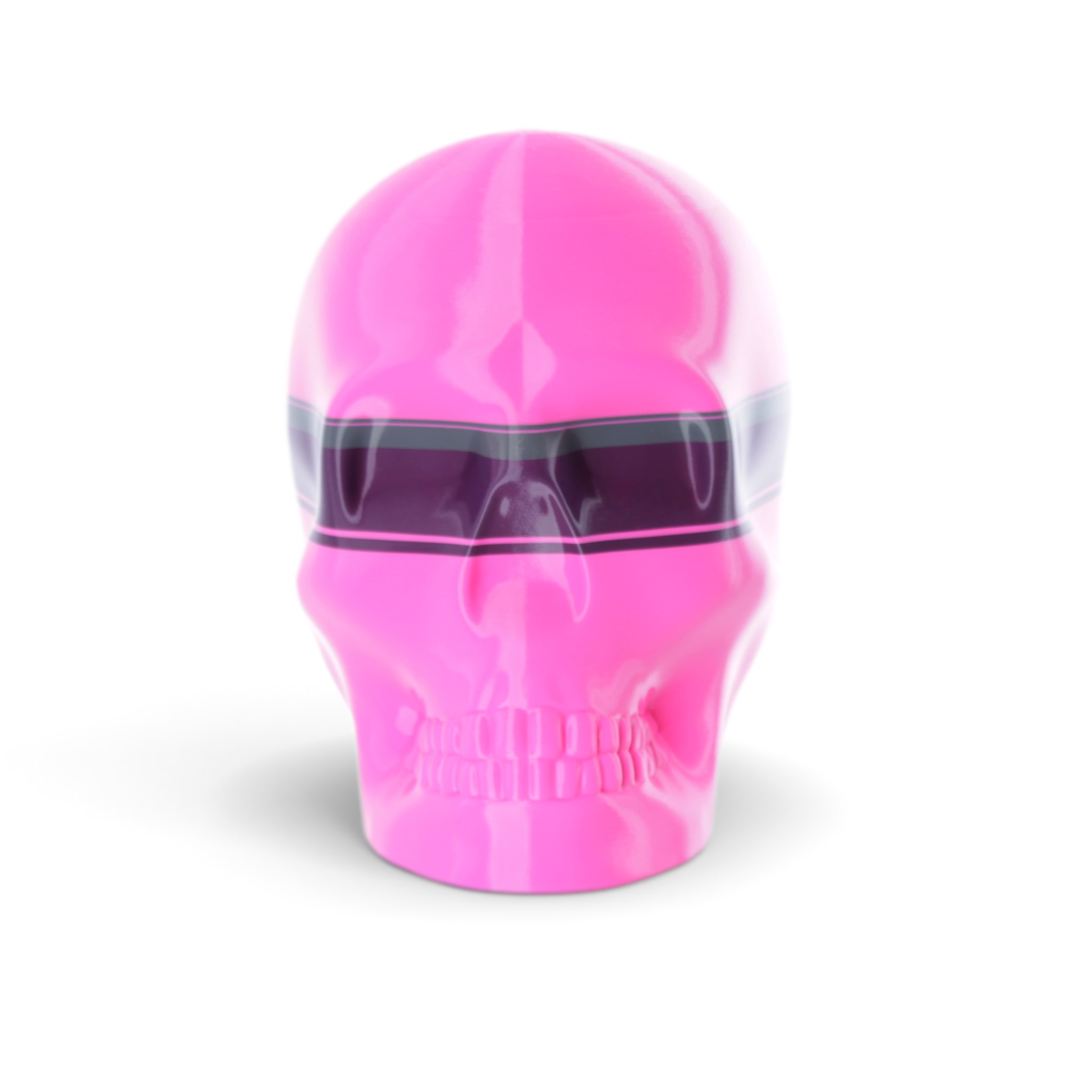 The shape in this series is a constant. Like the cups manufactured in the industrial age... they are all the same. Except with 3D printing we can customise and make every object unique... the skulls all have one of a kind colour patterns manually inserted in the 3D printing process.