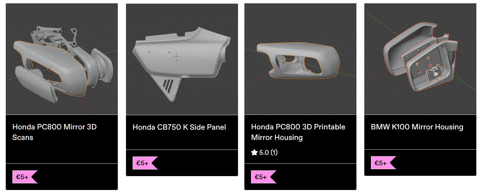 Spare Cans is an initiave by studio macouno. We specialize in high-precision 3D scanning of (motorcycle) parts, combining advanced technology with meaningful employment. Our team, including individuals on the autism spectrum, brings great care and attention to detail to every scan.
